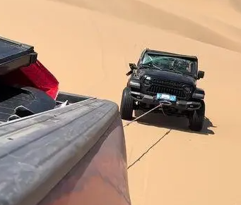 沙漠車輛救援安全是第一位,要正確使用電動(dòng)絞盤,在保證自身安全的同時(shí),對(duì)被困車輛進(jìn)行救援。